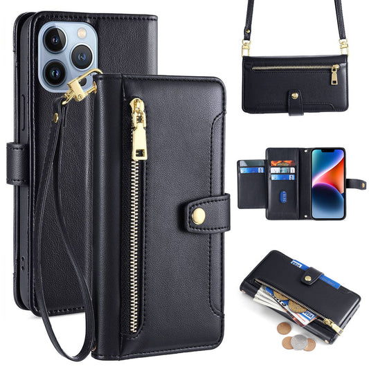 New Crossbody Zipper Wallet Leather Phone Case for iPhone